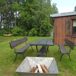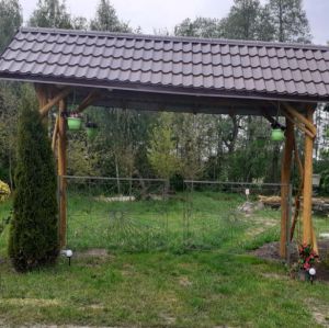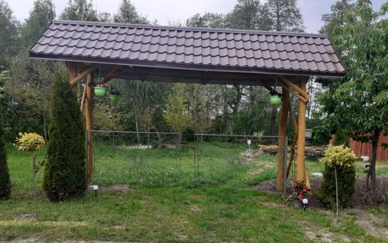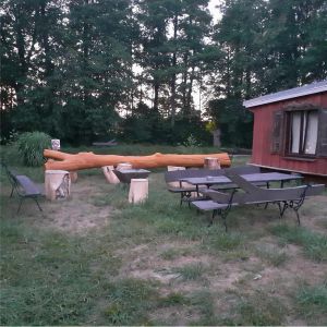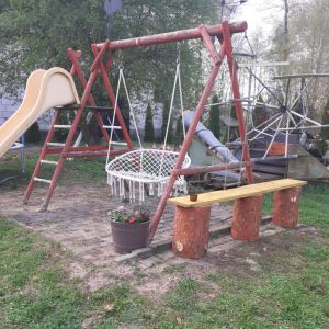 W ogrodzie mamy leżaki, drewniany plac zabaw, huśtawki, grill, altany, palenisko na ognisko.